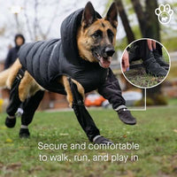 Our durable dog boots feature reinforced stitching, waterproof materials, and anti-slip soles engineered for all-terrain performance. Tested in extreme conditions to ensure they last season after season.