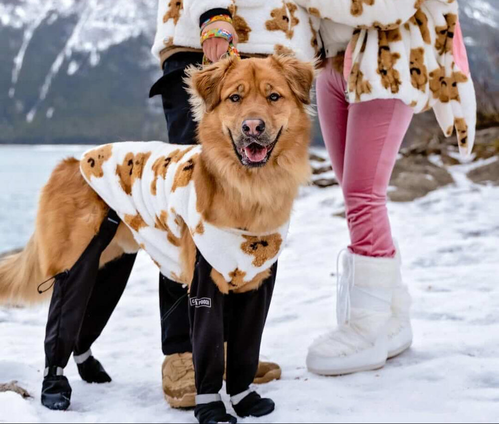 Complete coverage from paw to thigh provides uninterrupted protection against snow, ice, and harmful road salt.