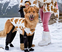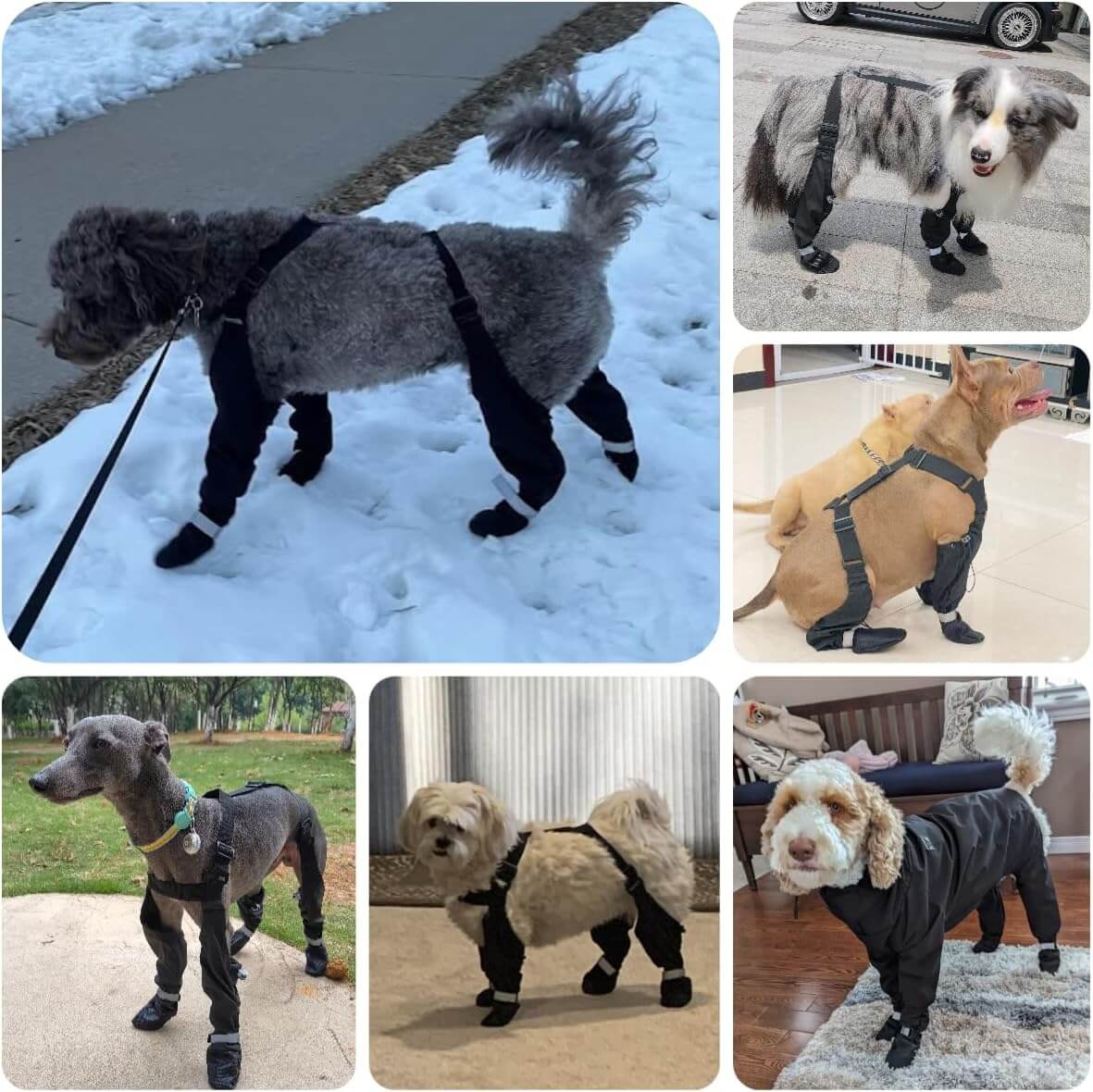 Unlike cheap boots that slip off or only cover two legs, our patented suspender system keeps all four boots securely in place with a custom-fit seal. This means complete protection from snow, ice, and salt—from paw to thigh.